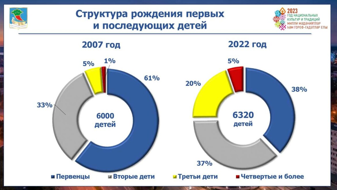В 2022 году в городе зарегистрировано рождение около 6,3 тыс. малышей. И если в среднем по республике на 1 тысячу жителей пришлось 9,5 акта о рождении детей, то в Набережных Челнах этот показатель составил 12, что является одним из лучших.