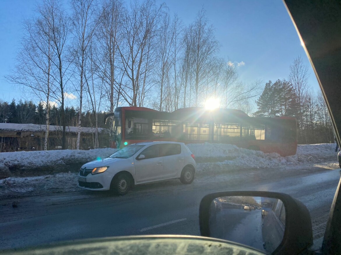 Маршрутный автобус в Казани вылетел с дороги в сугроб