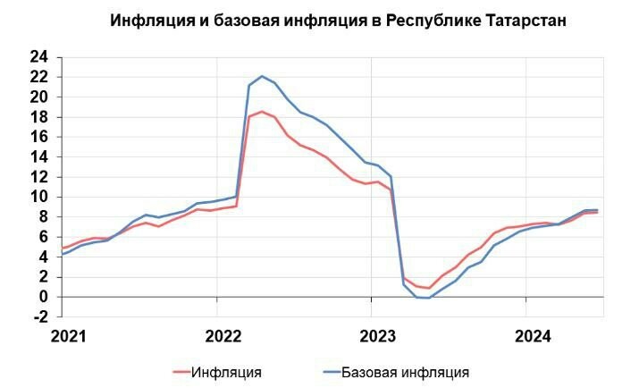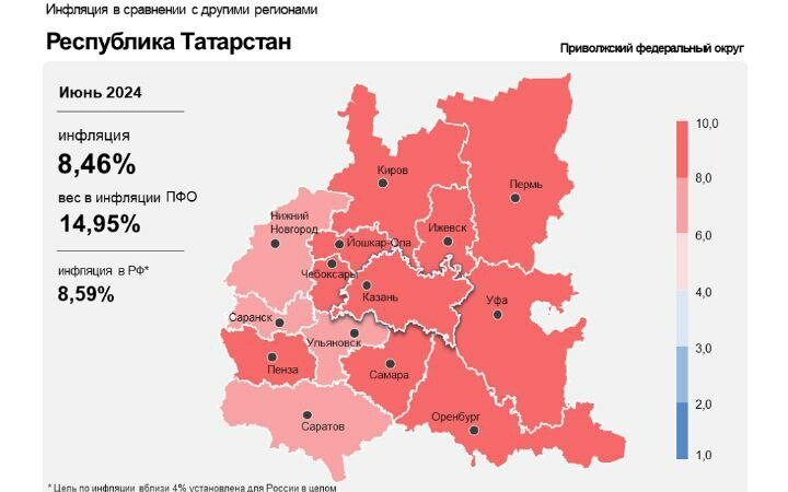 Интересно, что инфляция в Татарстане оказалась выше, чем в Приволжском федеральном округе (8,30%), но ниже, чем в среднем по России (8,59%).