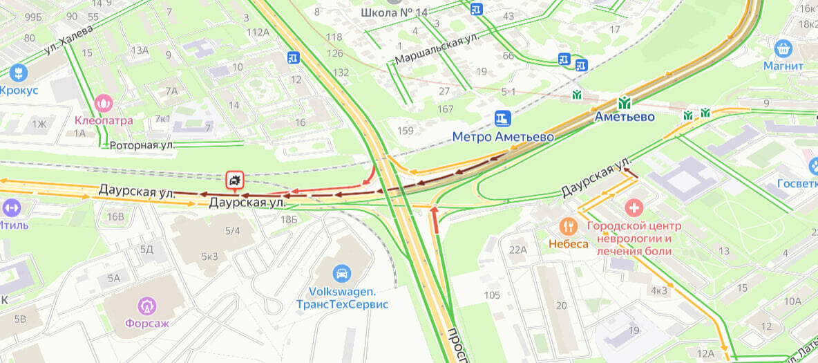 В итоге на пересечении проспекта Универсиады и Аметьевской магистрали собралась пробка. Об этом следует из данных сервиса «Яндекс. Карты».