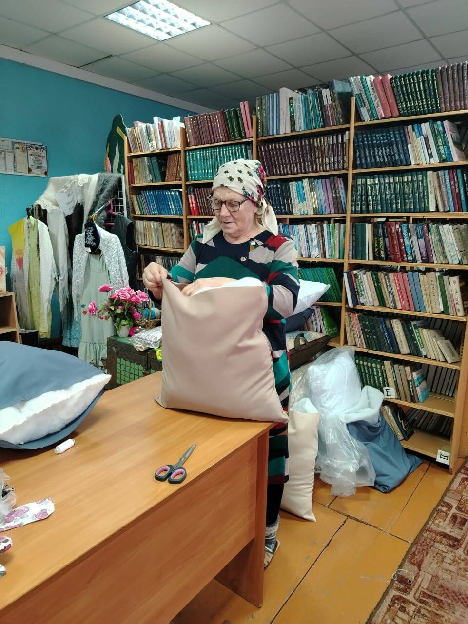 Основной объем работ выполнялся в самой библиотеке, но две жительницы – Суфия Алтынбаева и Ильсияр Сафиуллина – шили наволочки у себя дома.
