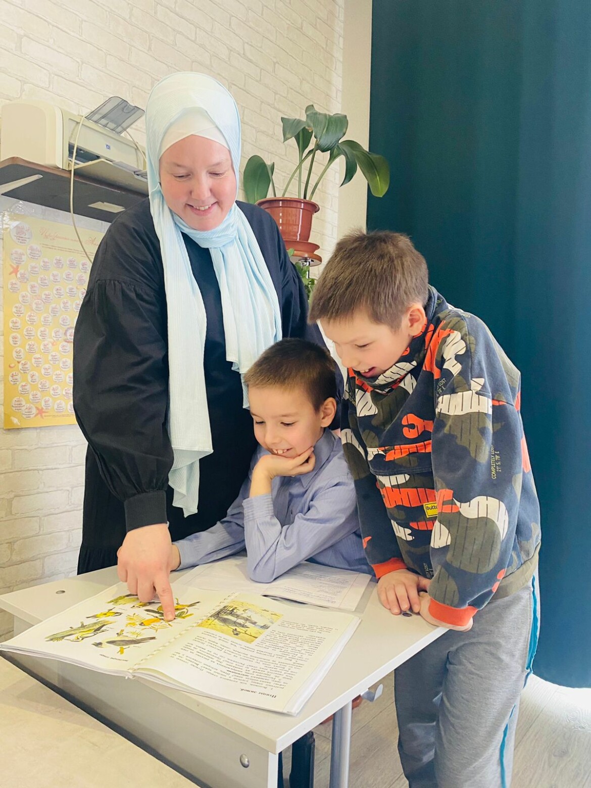 Младшие сыновья находятся на семейном обучении. После уроков заняты хобби. 10-летний Хаким хорошо рисует, чаще всего пейзажи, машины. 8-летний Ахмад вместе с братом делает из дерева разные фигурки, особенно удался танк.