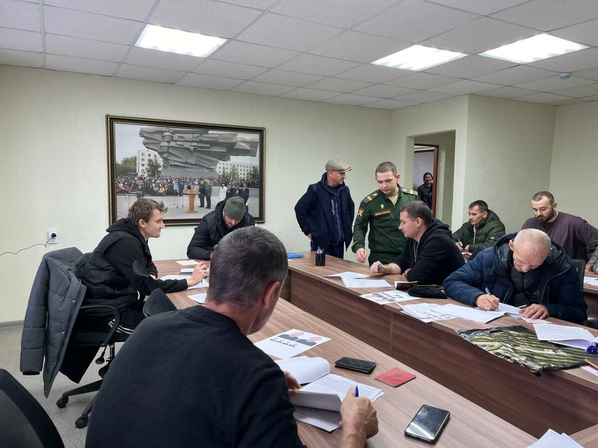 Военнослужащий с позывным Дед решил прийти в военкомат, пока находится в отпуске. Мужчина общался с теми, кто только решил подписать документы, давал им советы, рассказывал о службе. Сам он заключил контракт с Минобороны России в конце января 2024 года. Решение он объяснил тем, что патриот, к тому же его брат тоже находится за ленточкой.