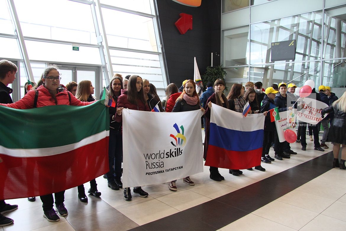 (Казань, 4 октября, «Татар-информ»). Сегодня в Международный аэропорт «Казань» прибыли татарстанские участники и победители Euroskills Budapest 2018. Заместитель премьер-министра РТ — министр образования и науки Рафис Бурганов поздравил чемпионов и вручил цветы. В зале ожидания встречающие устроили настоящее шоу с ростовыми куклами, танцами и плакатами. Студенты Казанского инновационного университета спели песню в честь героев республики.
