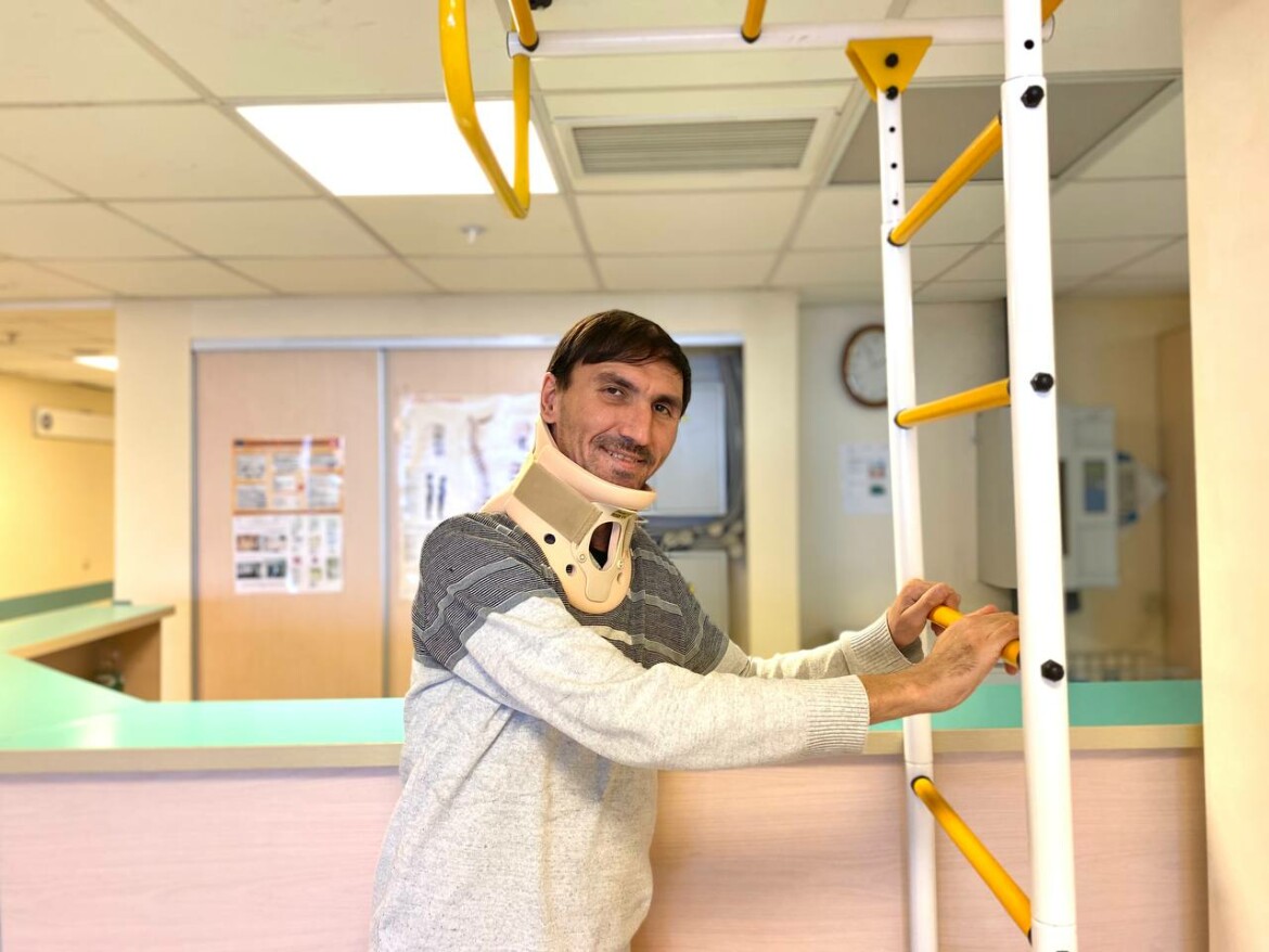 Впереди у Дамира Валиуллина длительная реабилитация, но пациент настроен решительно. Мужчина уже начал выполнять комплекс лечебных упражнений.
