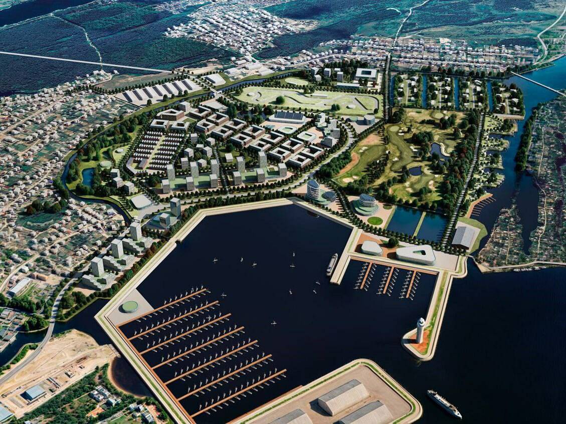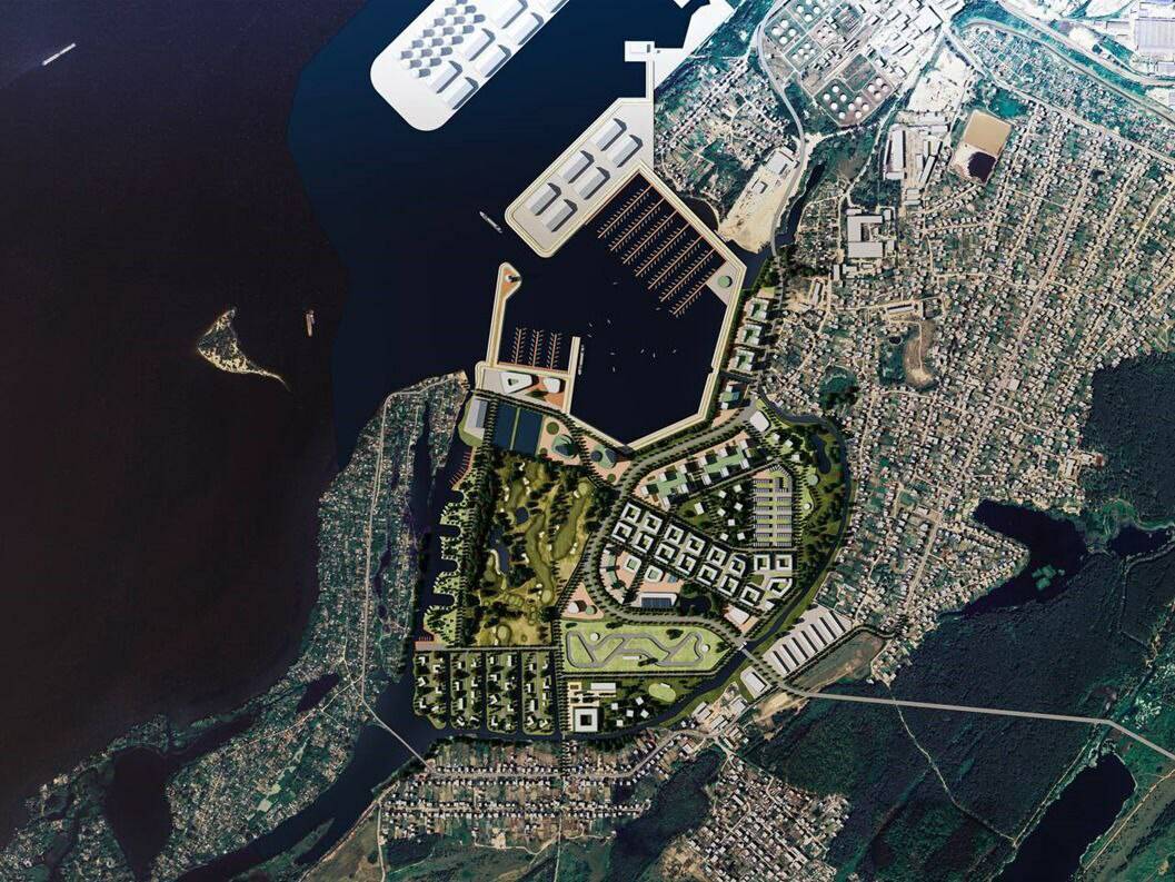 Предусмотрена индивидуальная жилая застройка, многоквартирные малоэтажные и среднеэтажные дома, школы, детский сад, речная марина, паркинг.