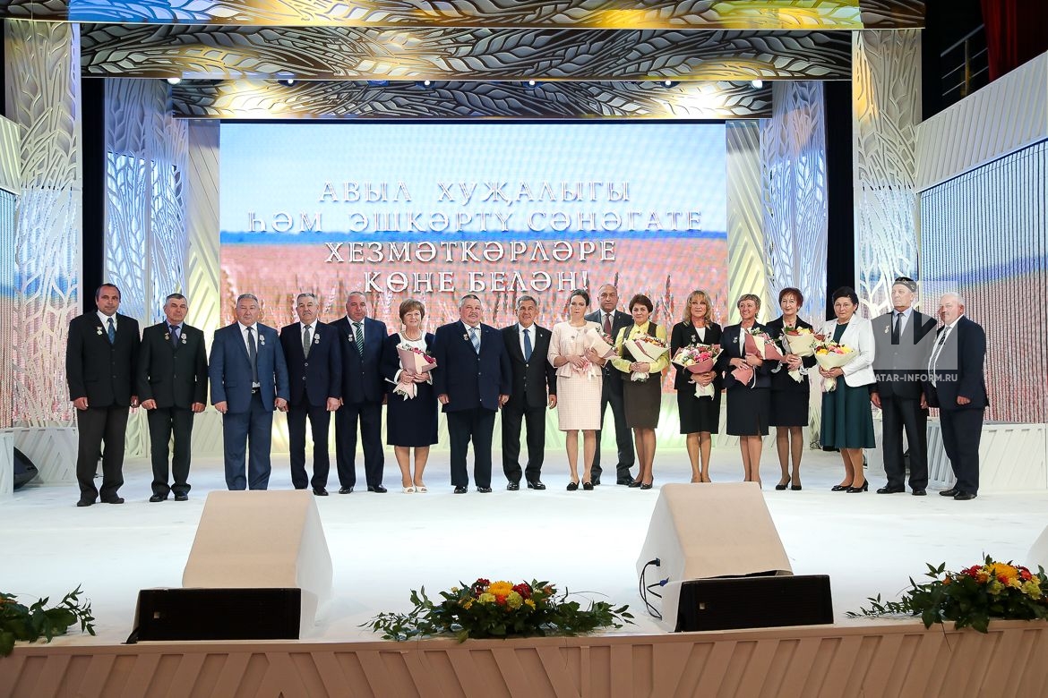 В рамках торжественного мероприятия Рустам Минниханов вручил государственные награды наиболее отличившимся работникам отрасли – медали «За доблестный труд», звания «Заслуженный агроном Республики Татарстан», «Заслуженный ветеринарный врач РТ», «Заслуженный работник сельского хозяйства РТ». Также были удостоены звания «заслуженных» лучший зоотехник и животновод республики.