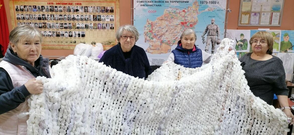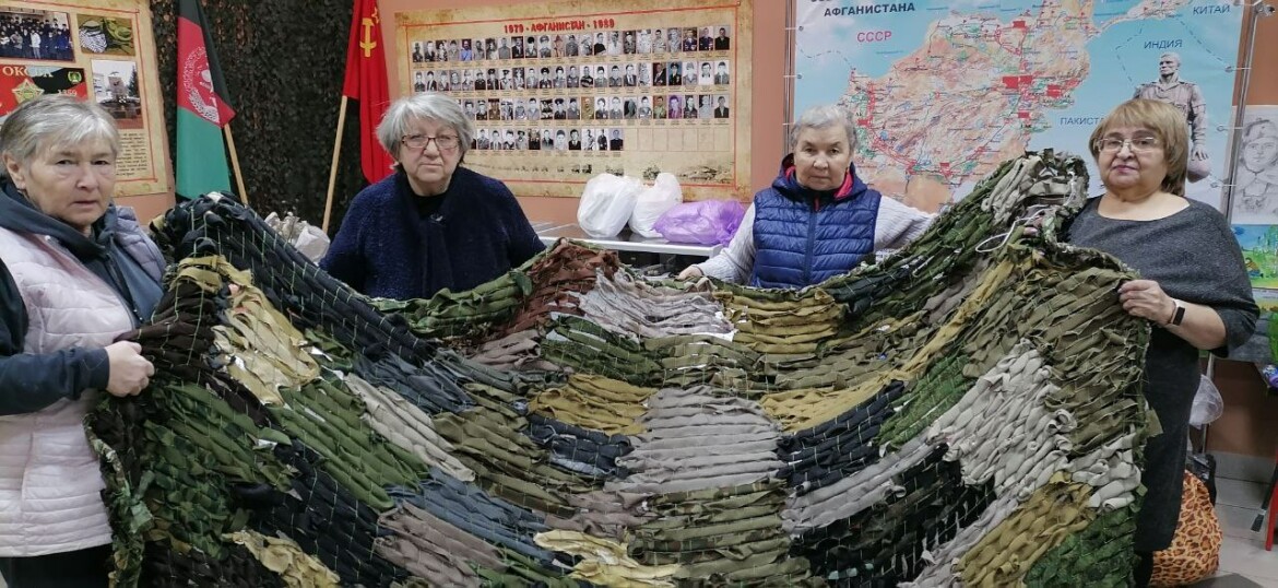 Жители Менделеевска сплели и отправили 31 маскировочную сеть в зону спецоперации. Все сети связаны инициативной группой «Мы вместе» при патриотическом музее кинотеатра «Юность», старшим поколением в кабинете Совета ветеранов и активистами из почтового отделения в ТОС «Поселок».