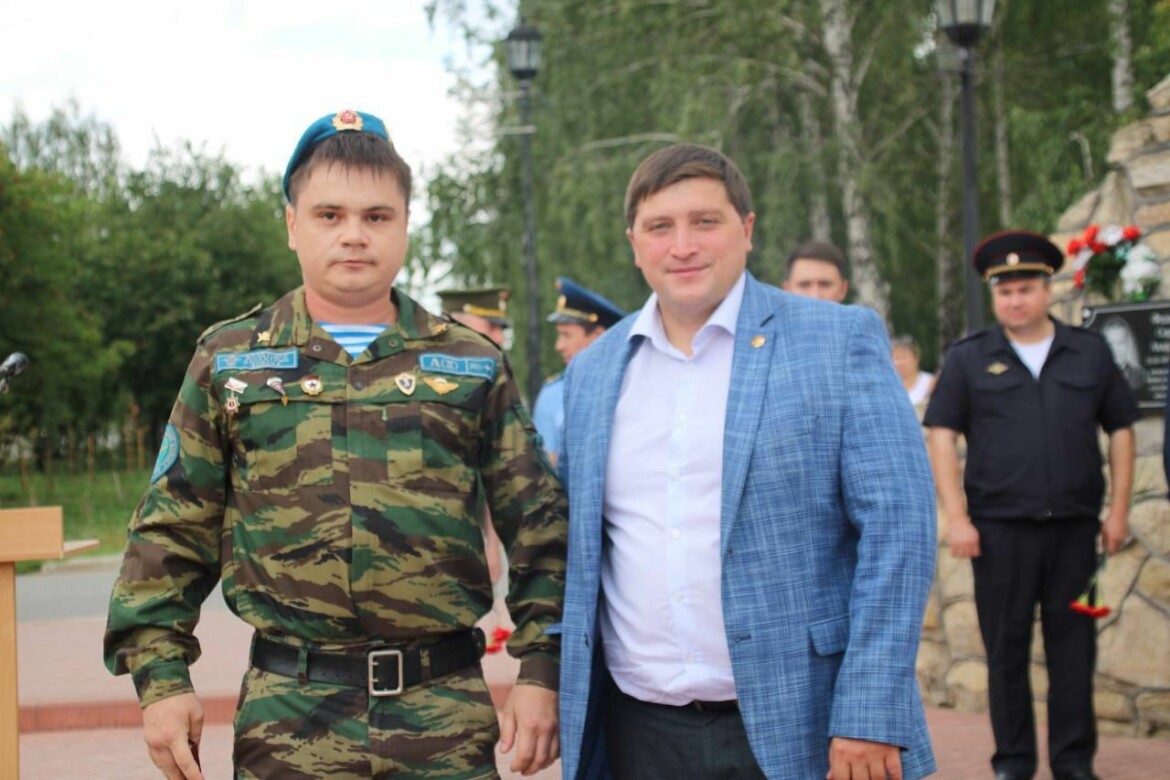 В День воздушно-десантных войск в Менделеевске состоялся торжественный митинг. Глава района Радмир Беляев вручил удостоверения ветерана боевых действий десантникам — участникам спецоперации, рядовым Игорю Бажанову и Ренату Гилязову.