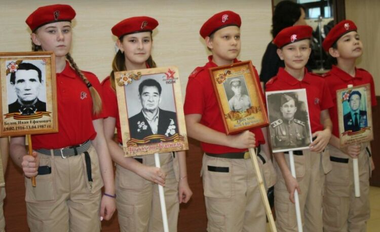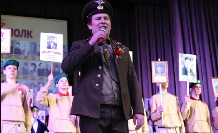 Школьники и юнармейцы организовали акцию «Бессмертный полк», пройдясь по залу с портретами своих дедушек и прадедушек. Воспитанники спортклуба «Сатори» продемонстрировали показательные выступления.