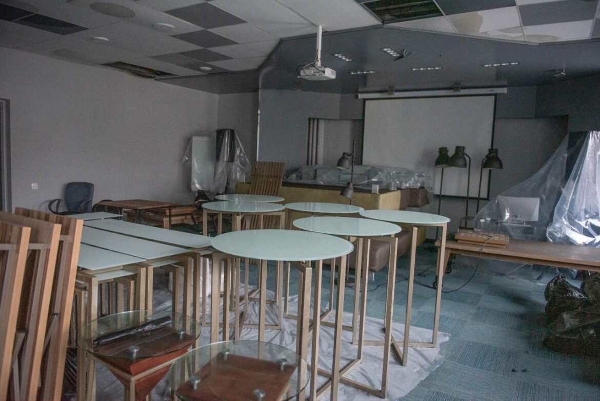 Владелица отеля Светлана Гомберг показала очаг возгорания — он располагался на первом этаже отеля. На втором этаже из трех конференц-залов пострадал лишь один, другие два — в удовлетворительном состоянии. Номера на этом этаже также пострадали лишь частично.