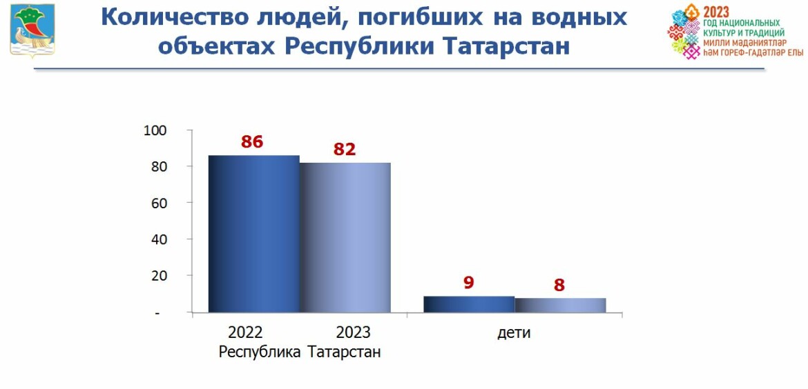 В прошлом году в Татарстане на воде погибли 86 человек, в этом — 82. Из них восемь — дети. Челны в этом году потеряли ребенка, в том году — семь человек, в том числе двое детей.