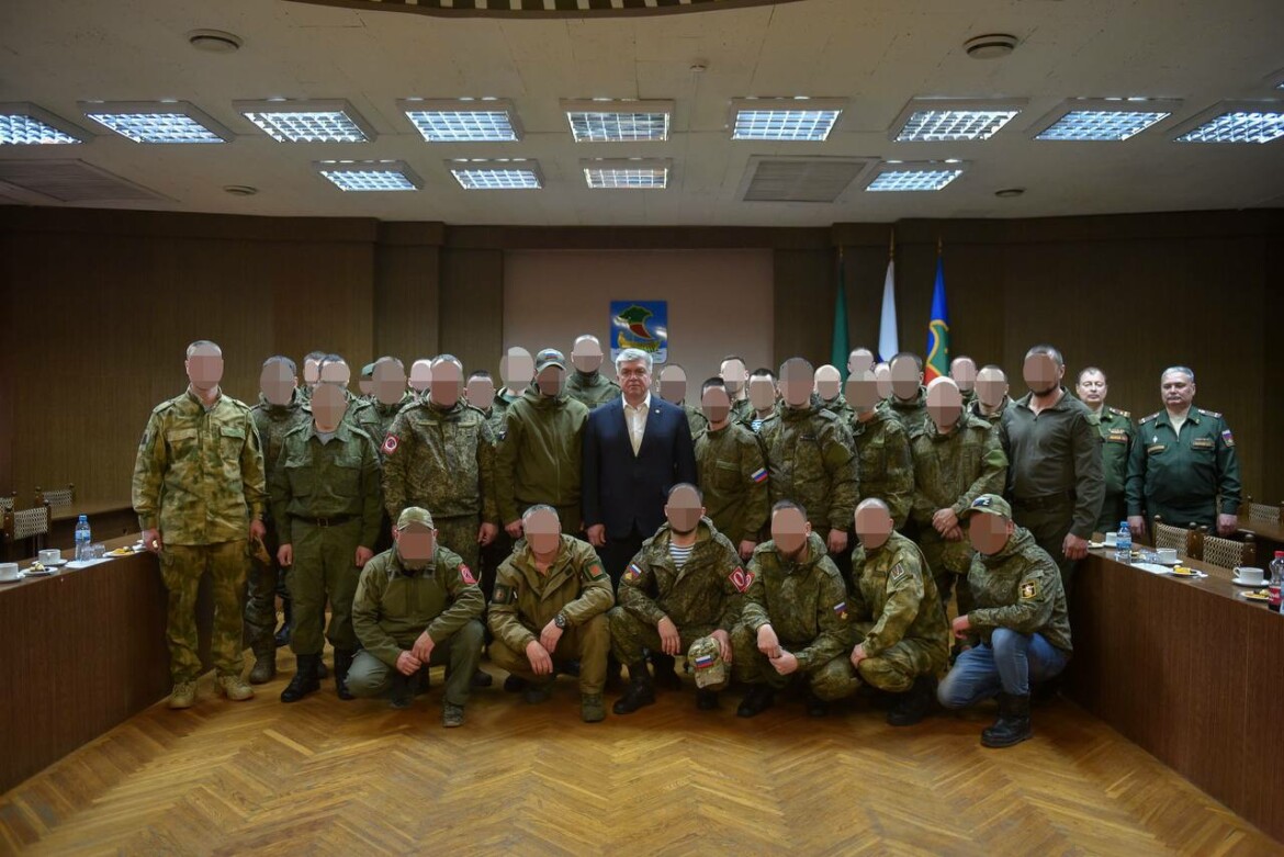 «Обсудили за чашкой чая житейские вопросы. Вручили рюкзаки с необходимыми вещами. Пожелал всем нашим воинам вернуться живыми и здоровыми домой. Ждём наших ребят с победой!» — написал Магдеев в своем Telegram-канале.