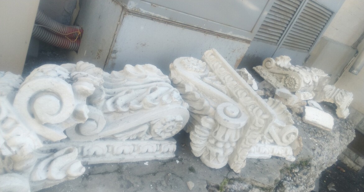 «Обратите кто-нибудь внимание, на то, как сейчас рабочие уничтожают исторический дом „Миру — мир“ на площади Свободы. Там начался как бы ремонт фасада. А на самом деле сейчас каждый день рабочие отбивают ломами и молотками лепнину 1940-х годов. Уже почти всю отбили по периметру карниза всего дома. Разбитая историческая лепнина валяется во дворе. По-моему, это ужас!» — написали горожане в соцсетях.