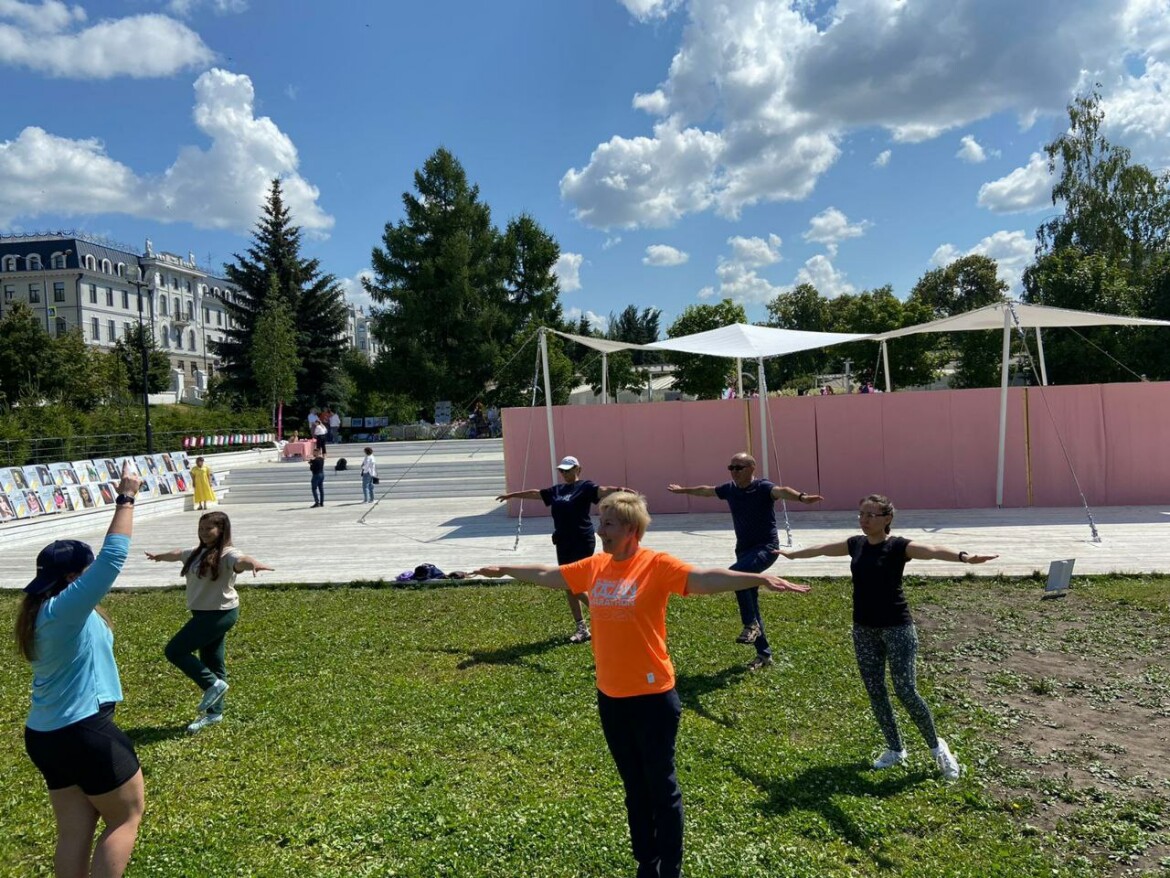 Заслуженный тренер РФ, координатор партийных проектов «Детский спорт», «Спорт без границ», «Моя карьера с „Единой Россией“», член регионального совета сторонников партии «Единая Россия» в Татарстане Ольга Павлова приняла участие в спортивной разминке и пробежала дистанцию в 1000 метров вокруг Черного озера вместе с заместителем исполнительного директора компании Timerman Кристиной Камалетдиновой, которая и проводила разминку.