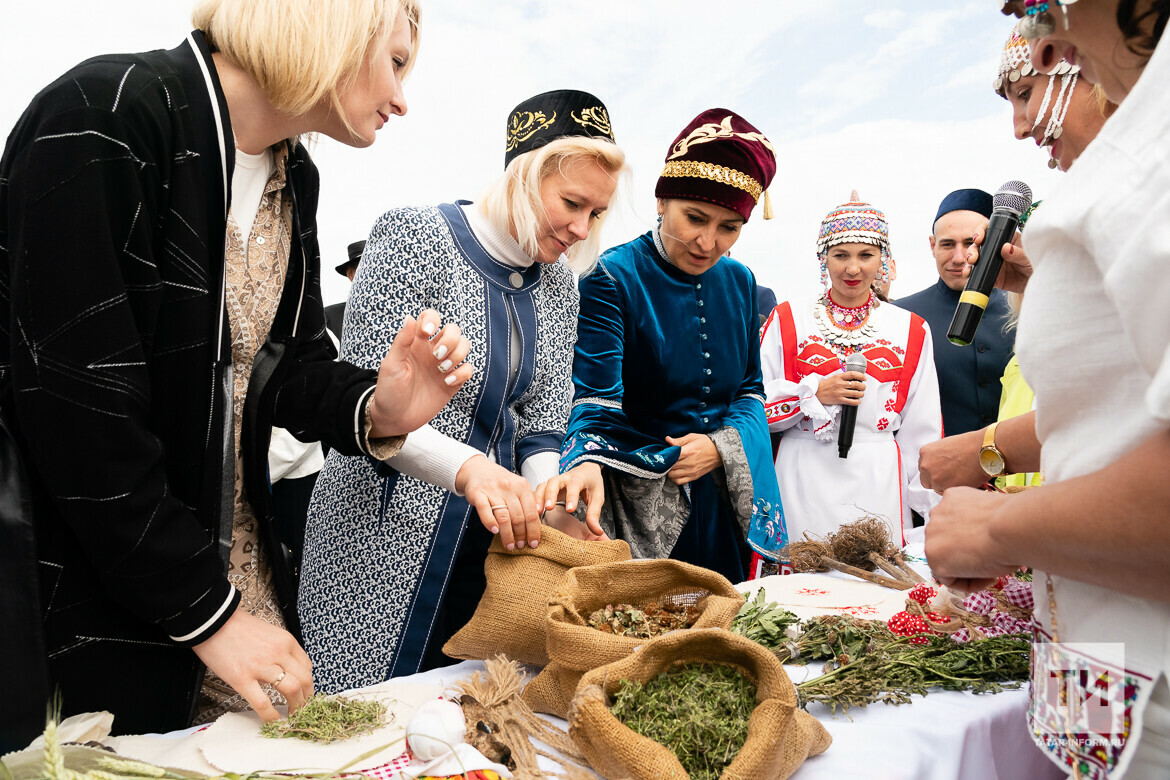 На площадке сделали три подворья: татарское, чувашское и русское. Здесь гостям провели мастер-классы по кузнечному делу, плетению чувашских оберегов, а также накормили национальными блюдами и показали, как устроены сельское ремесло и быт.