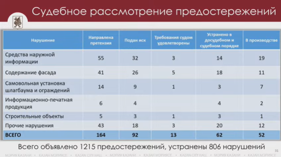 С августа прошлого года Управление административно-технической инспекции исполкома Казани объявило более 1,2 тыс. предостережений за нарушения по содержанию зданий и территорий. Одно из самых распространенных нарушений — вынос грязи со строительных площадок на городские дороги. В этом году зафиксировано 7 таких фактов.