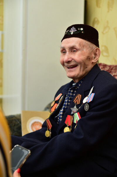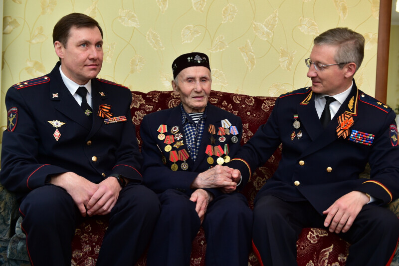 Глава МВД по РТ Артем Хохорин вместе с начальником УМВД России по Казани Александром Мищихиным пришли в гости к старшему сержанту внутренней службы в отставке 102-летнему Гафияту Самиковичу Акберову, который прошел всю Великую Отечественную войну.