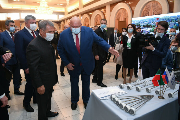 Перед началом торжественной церемонии Президент РТ ознакомился с выставкой машиностроительной продукции республиканских предприятий.