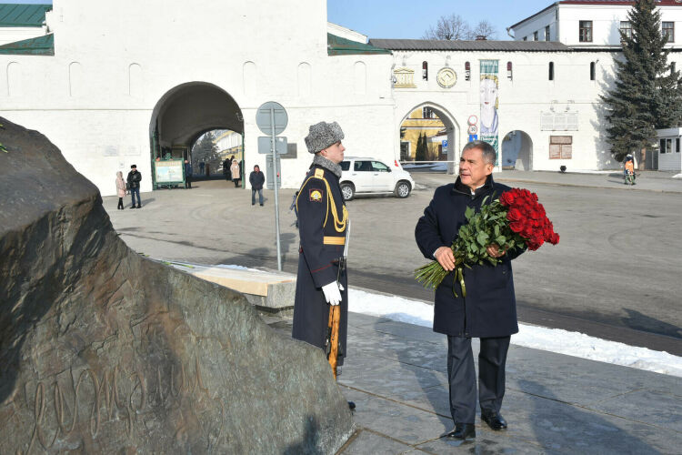 Минниханов в день рождения Джалиля возложил цветы к памятнику поэту