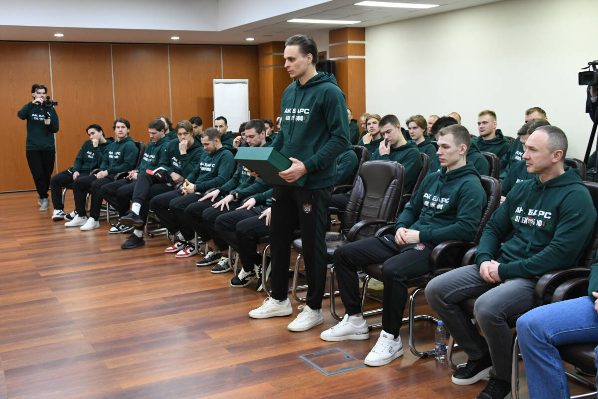 Встреча с Раисом Татарстана состоялась у «Ак Барса» сразу на следующее утро после приезда команды из Москвы. Накануне вечером казанцы победили в матче-триллере столичное «Динамо» со счетом 7:5. Вероятно, любой другой повод позволил бы хоккеистам «Ак Барса» провести сегодняшнее утро в комфорте у себя дома, однако традиционное напутствие Рустама Минниханова игрокам – это уже давно больше, чем просто встреча. Символичное событие, с которого как раз таки начинается путь клуба в плей-офф Кубка Гагарина.