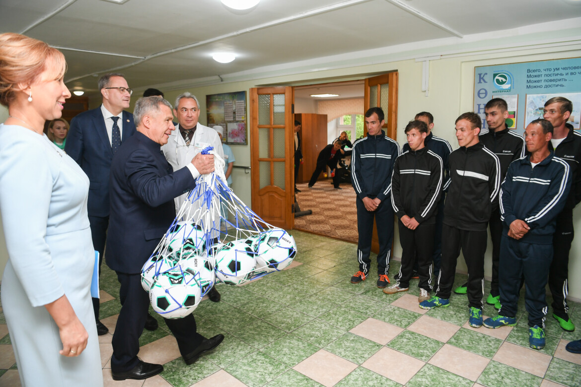 В доме-интернате есть спортивная команда — она участвует во всероссийских и международных соревнованиях. В 2022 году сборная интерната стала победителем Всероссийской спартакиады специальной олимпиады по мини-футболу в Санкт-Петербурге. Спортсмены поблагодарили Рустама Минниханова за спортивную площадку, где проходят тренировки. Гость подарил им новые футбольные мячи.