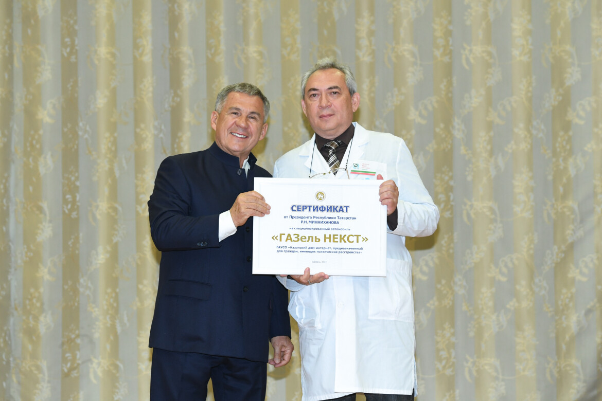 Рустам Минниханов вручил государственные награды Республики Татарстан и Благодарности Президента Татарстана наиболее отличившимся работникам социальной отрасли. Также дому-интернату был вручен сертификат на приобретение специализированного автомобиля ГАЗель Next с подъемным механизмом для перевозки инвалидов-колясочников.