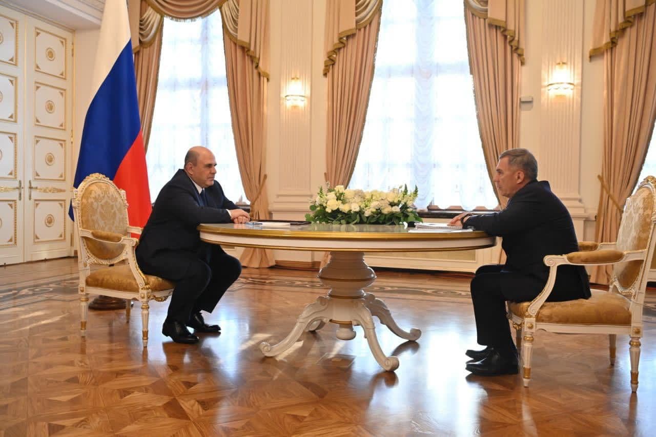 Президент Татарстана Рустам Минниханов провел встречу с Премьер-министром РФ Михаилом Мишустиным. Беседа состоялась в Казанской ратуше, сообщает руководитель пресс-службы Президента Лилия Галимова.