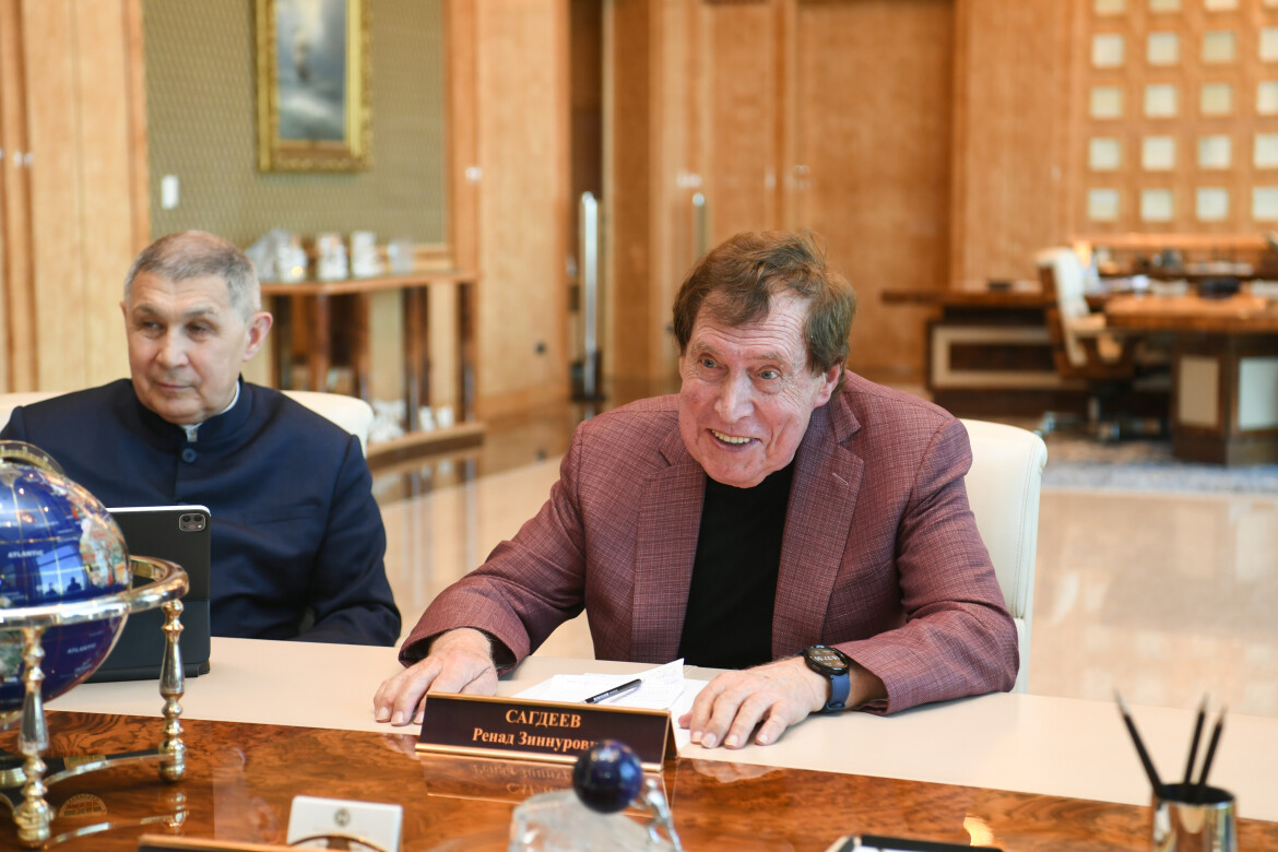 Раис Татарстана Рустам Минниханов встретился в Казани с научным руководителем Института «Международный томографический центр» Сибирского отделения Российской академии наук Ренадом Сагдеевым.