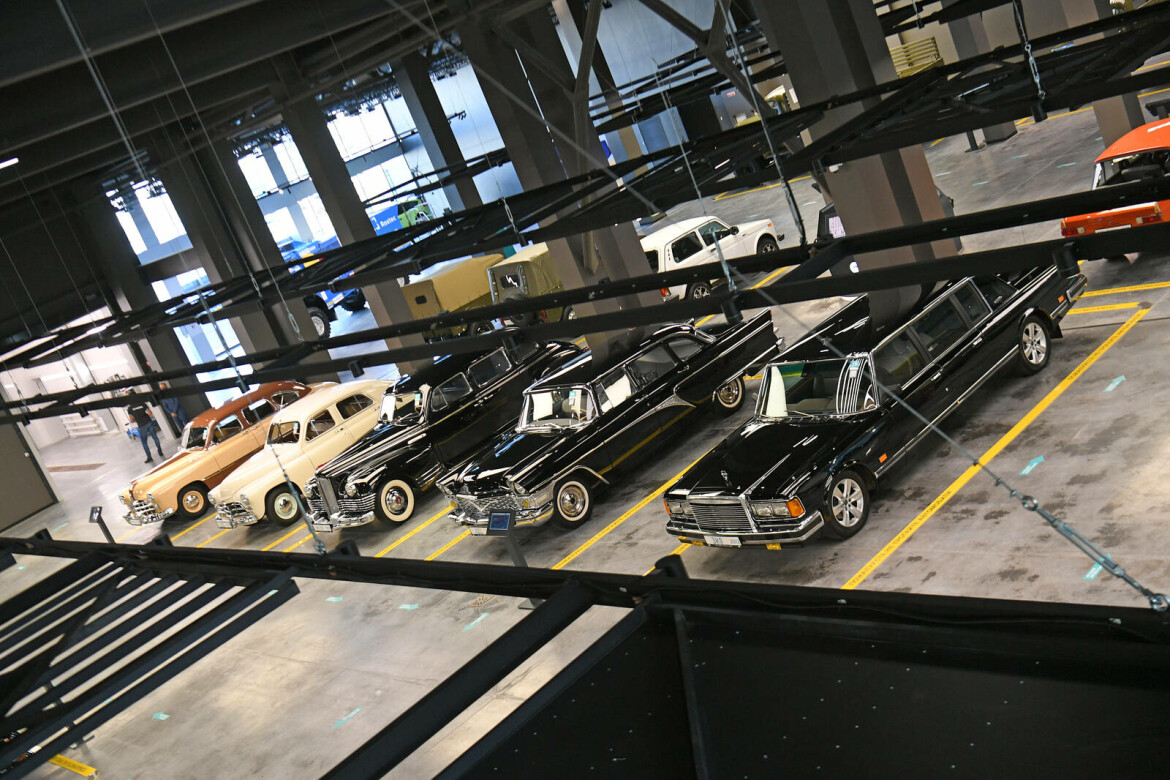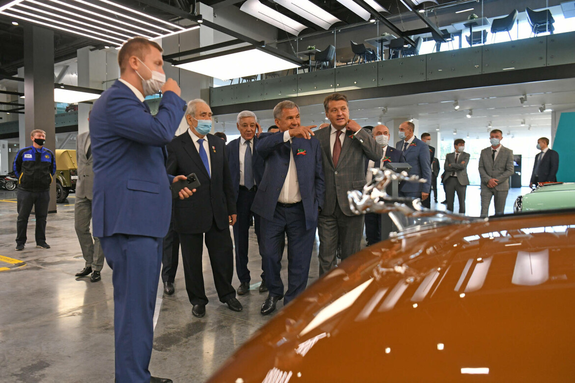 Президент Татарстана Рустам Минниханов, Государственный Советник РТ Минтимер Шаймиев и Председатель Госсовета республики Фарид Мухаметшин посетили выставочный комплекс Ak Bars Retro Cars в Казани.