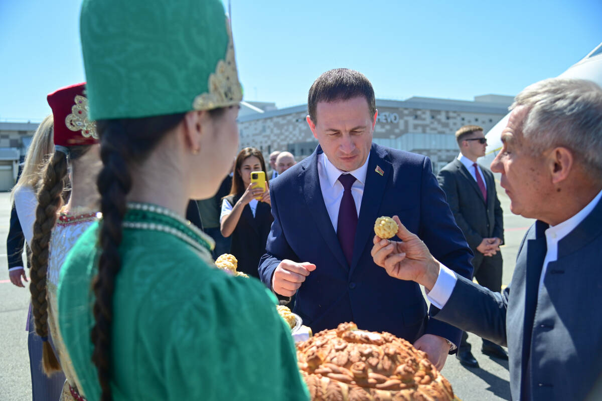 Важное событие в международном сотрудничестве республики – с рабочим визитом в Татарстане побывал Премьер-министр Белоруссии Александр Турчин. В международном аэропорту «Бегишево» его встретил Рустам Минниханов. Не обошлось и без традиционной дегустации чак-чака после выхода из самолета.