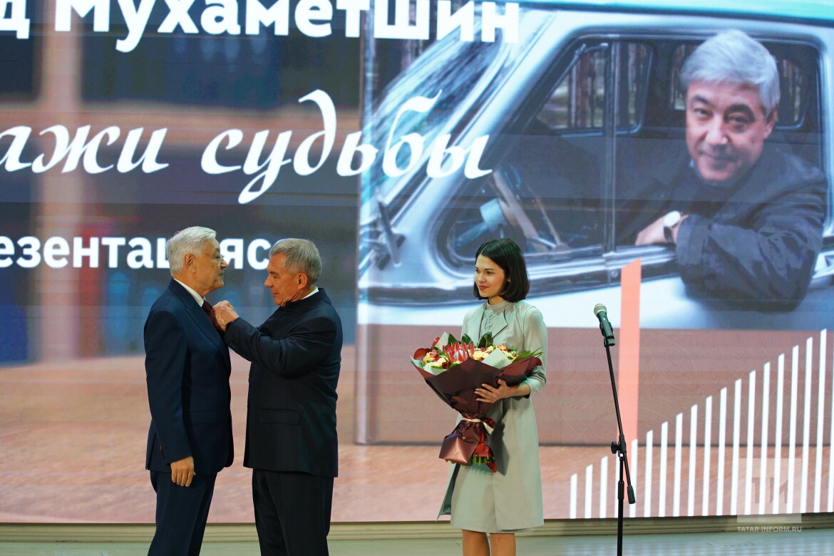 Президент Татарстана Рустам Минниханов посетил презентацию книги «Фарид Мухаметшин. Виражи судьбы», вручив ее автору орден «Дуслык».