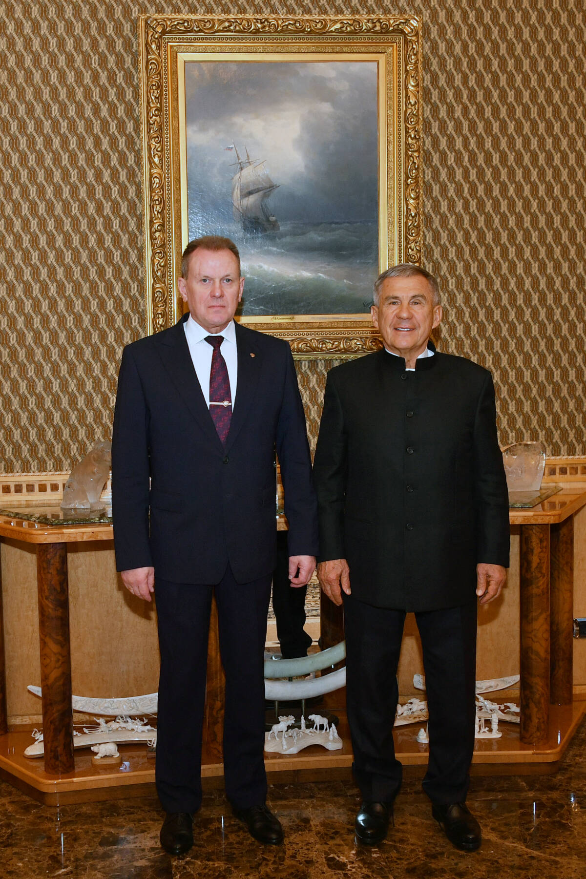 Кроме того, Аркадий Гостев вручил Рустаму Минниханову почетную грамоту Федеральной службы исполнения наказаний за заслуги в оказании помощи при выполнении задач, возложенных на уголовно-исполнительную систему России. В беседе принял участие начальник Управления ФСИН России по РТ Эдуард Хиалеев.