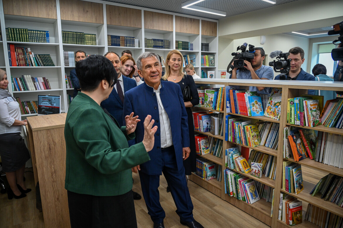 Кроме того, Рустам Минниханов осмотрел библиотеку №27. Тут он заглянул в детский библиотечный зал, медиатеку и аудиторию open space.