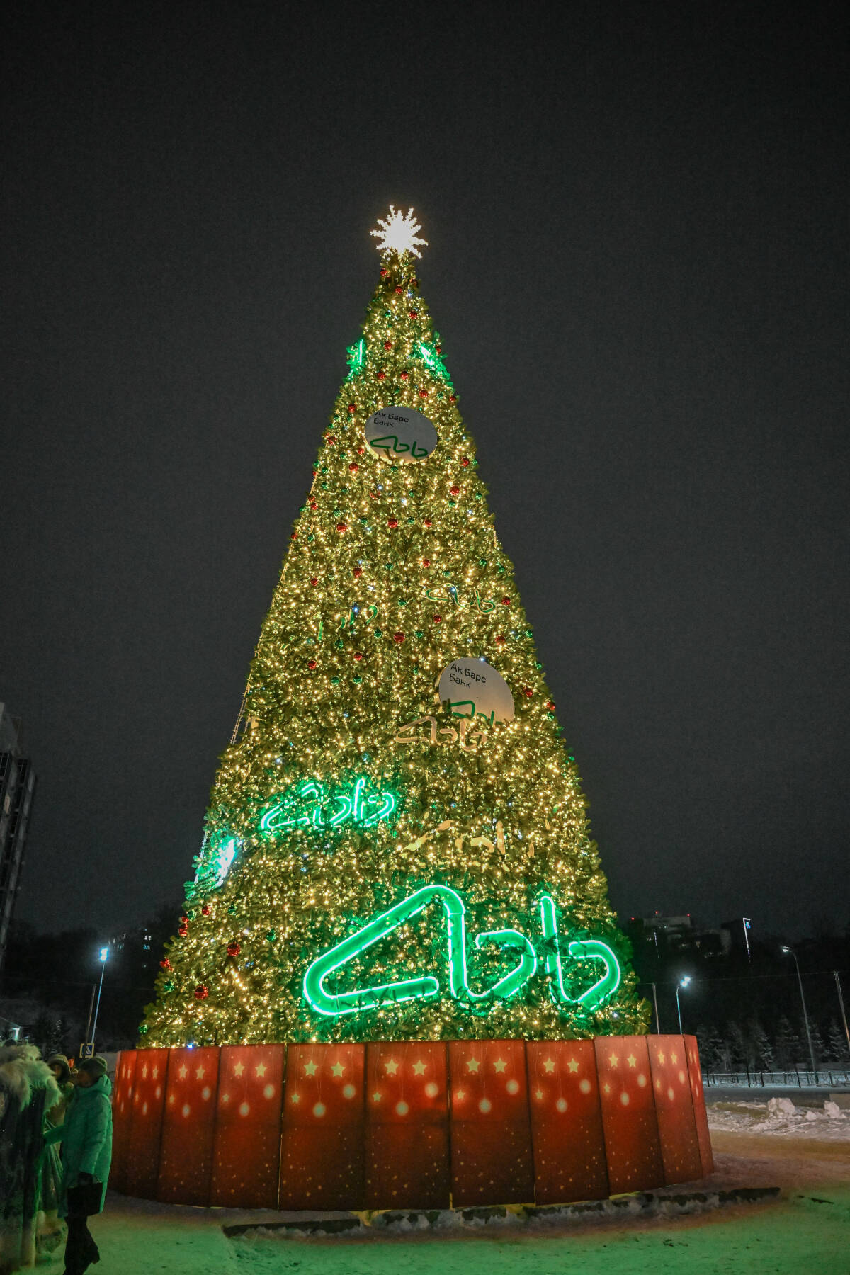 Центральным элементом праздничного оформления территории является новогодняя ель высотой 20 метров.