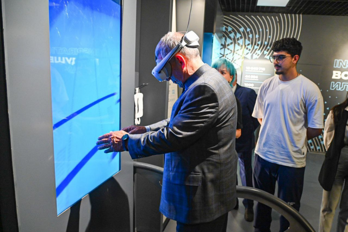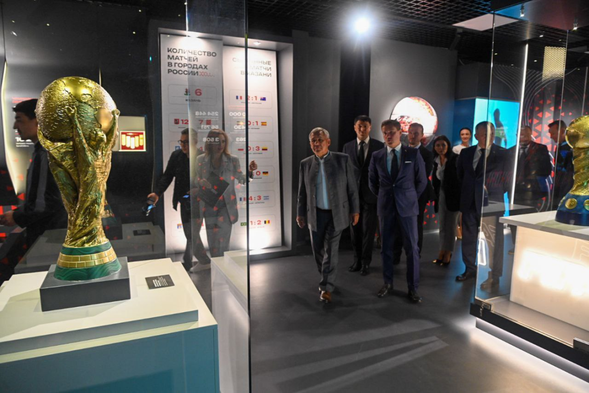 Минниханов отметил, что здесь можно даже «прыгнуть» с вышки Дворца водных видов спорта или прокомментировать футбольный матч, и выложил фотографии музейного пространства.