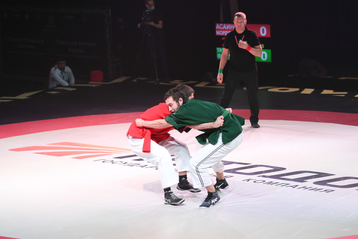 Кроме того, представители двух спортивных дисциплин в знак уважения перед началом соревнований обменялись символическими сувенирами. Представителю греко-римской борьбы вручили пояс, а представителю борьбы корэш — оливковую ветвь.