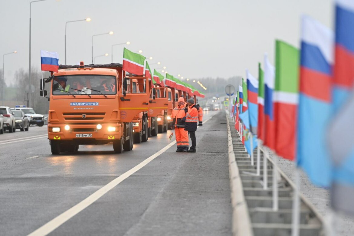 Минниханов показал запуск движения по участку трассы М7 в Зеленодольском районе