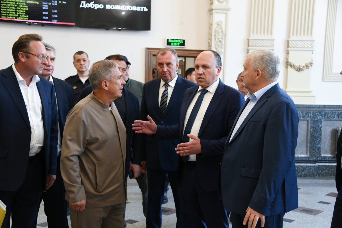 Осмотр начался со здания железнодорожного вокзала «Казань-1». Вместе с представителями Горьковской железной дороги Минниханов посетил VIP-терминал, а также терминал для маломобильных пассажиров, где был проведен ремонт. Следом участники проверки доехали на электричке до станции «Вахитово». Руководитель республики и сопровождавшие его лица оценили скорость и удобство передвижения.