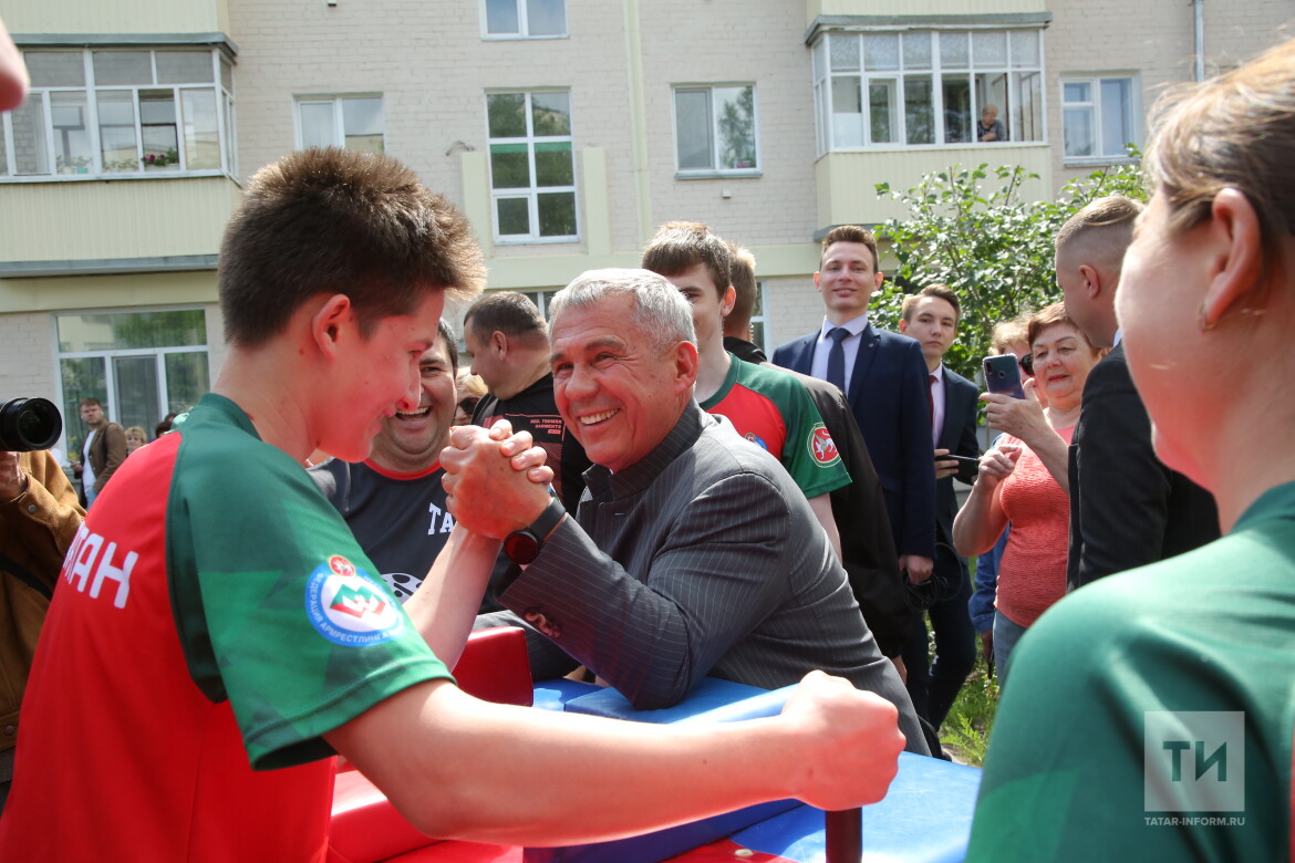 Минниханов посетил праздник двора и стадион «Ракета» в Дербышках