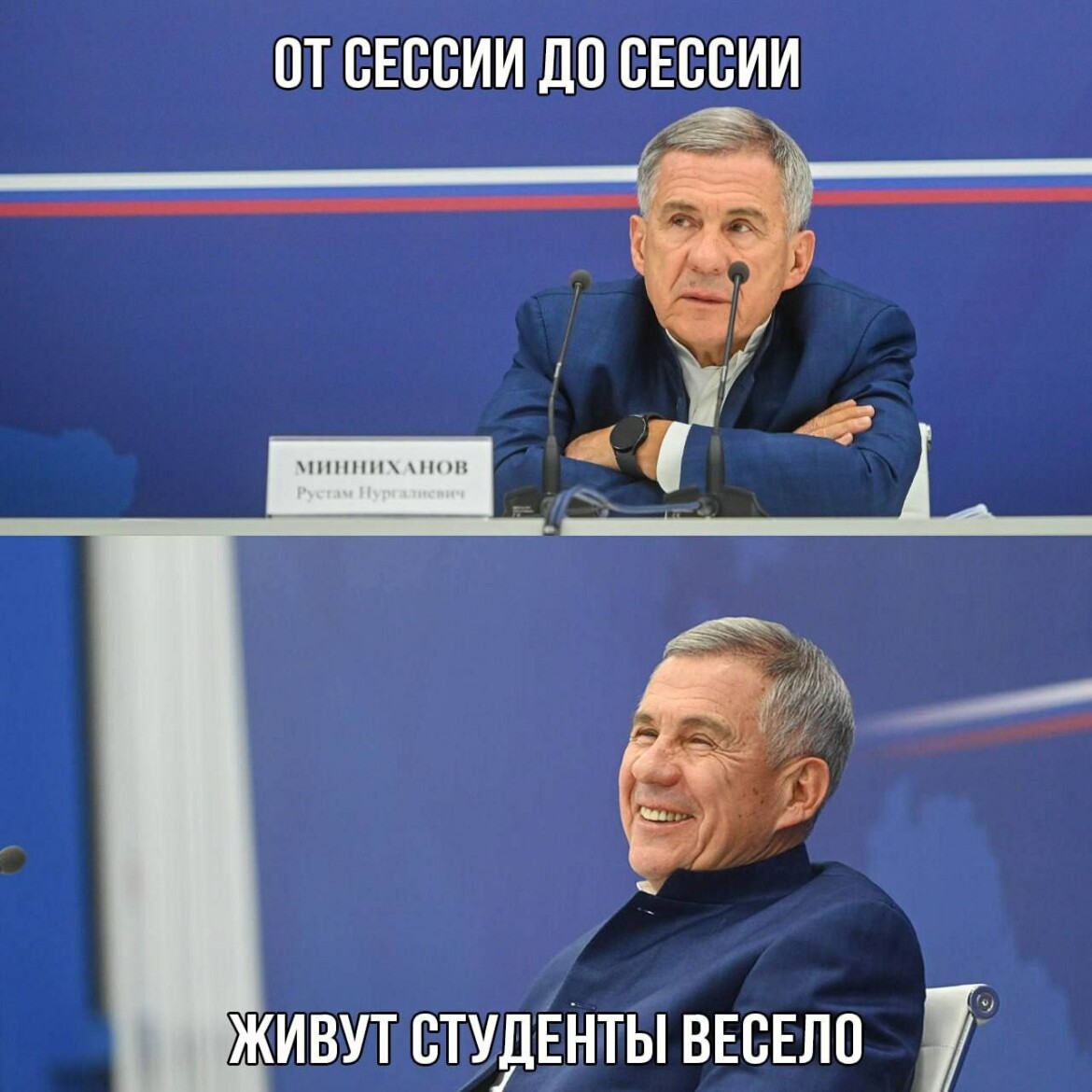 Раис Татарстана Рустам Минниханов поздравил учащихся вузов и ссузов с Днем российского студенчества. В честь праздника руководитель республики выложил в своем телеграм-канале пост с мемом.