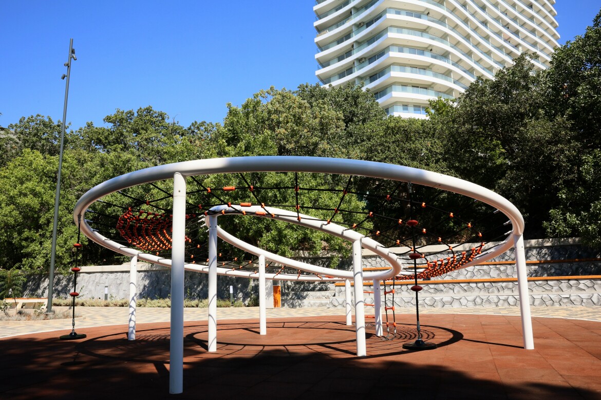 В сквере «Казанский» установлены современные спортплощадки, качели, появилась смотровая площадка. Также территория полностью оборудована для маломобильных граждан.