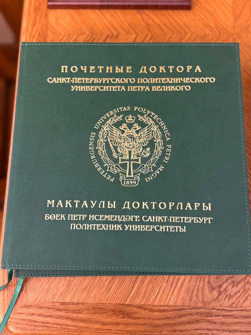Торжественная церемония вручения диплома и мантии прошла сегодня. Решение о присвоении почетного звания было принято ученым советом вуза. Имя Минниханова внесено в Книгу почетных докторов СПбПУ – в знак особого уважения экземпляр книги изготовлен и на татарском языке.
