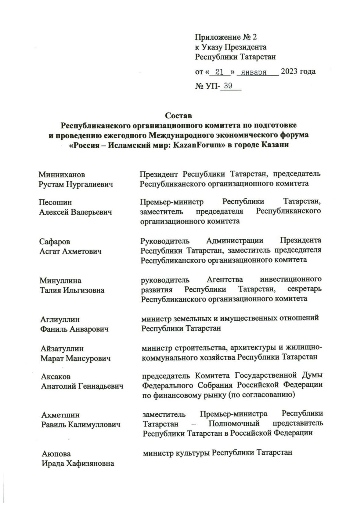 Президент Татарстана Рустам Минниханов подписал указ об образовании республиканского оргкомитета по подготовке и проведению ежегодного Международного экономического форума «Россия – Исламский мир: KazanForum». Указ опубликован на портале правовой информации.