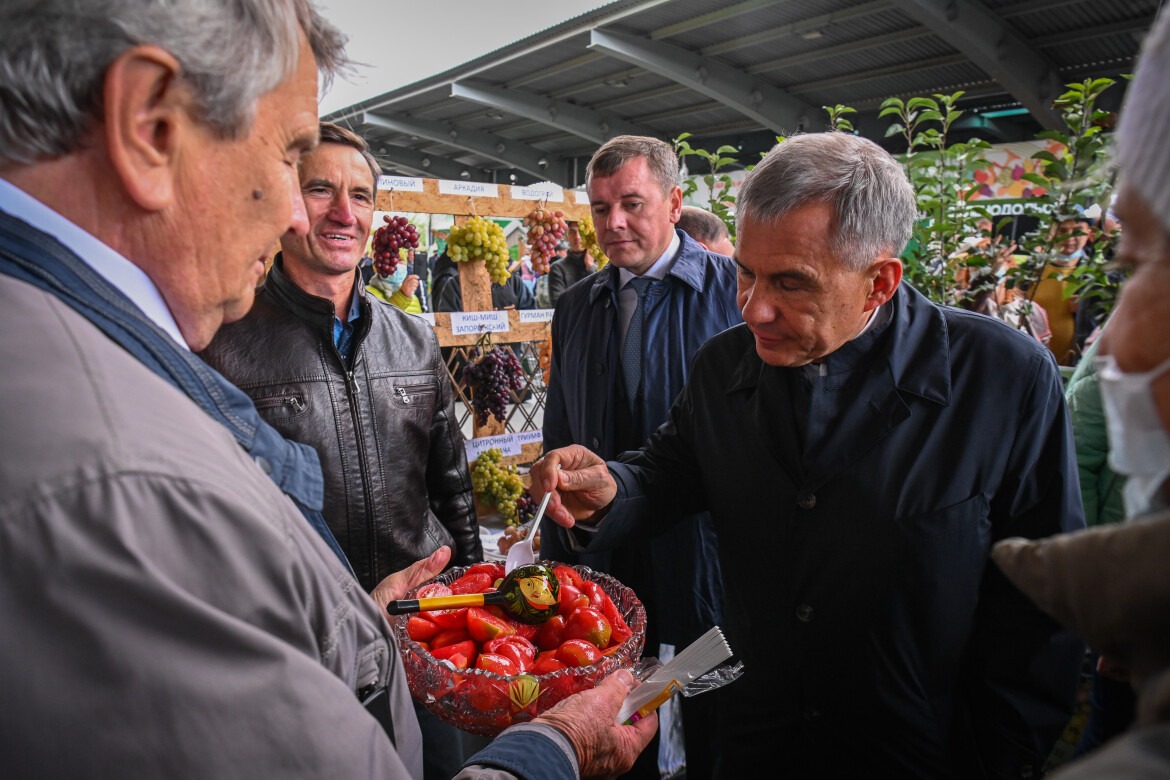Во время посещения выставки Президент РТ осмотрел ярмарочную площадку и торговые павильоны агропромпарка, ознакомился с ассортиментом сельхозтоваров и пообщался с садоводами. Свою продукцию здесь представили садоводческие товарищества Казани, Набережных Челнов и Нижнекамска, а также Верхнеуслонского, Высокогорского, Зеленодольского, Лаишевского, Пестречинского, Тукаевского и Чистопольского районов республики.