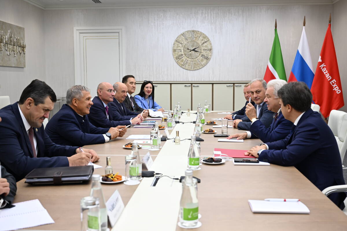 Раис Татарстана Рустам Минниханов встретился с председателем совета директоров ООО «Бифорком Тек» и ООО «Неорос» Олегом Ларионовым. Встреча прошла на площадке МВЦ «Казань Экспо» в рамках форума Kazan Digital Week 2025, сообщает пресс-служба Раиса РТ.