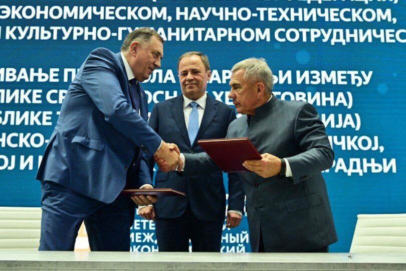 В завершении встречи Рустам Минниханов и Милорад Додик подписали Протокол о сотрудничестве между Республикой Татарстан (Российская Федерации) и Республикой Сербской (Босния и Герцеговина) о торгово-экономическом, научно-техническом, социальном и культурно-гуманитарном сотрудничестве.