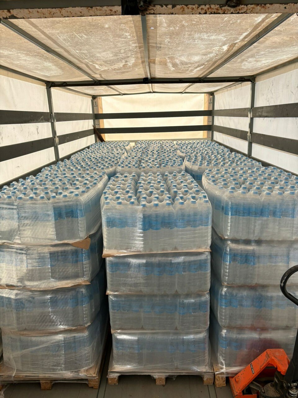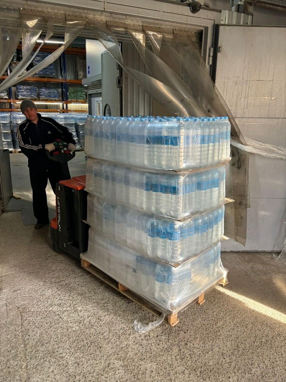 Пострадавшим от паводка жителям Оренбургской области будет доставлено более 24,1 тыс. бутылок воды — 48 паллет по 504 полуторалитровых бутылок в каждой.