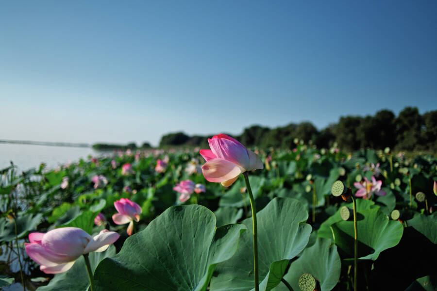 Еще одна из визитных карточек Астраханской области. Лотосовые поля – обширные пространства в дельте Волги, где с начала лета и до сентября можно увидеть огромное количество цветущих растений.