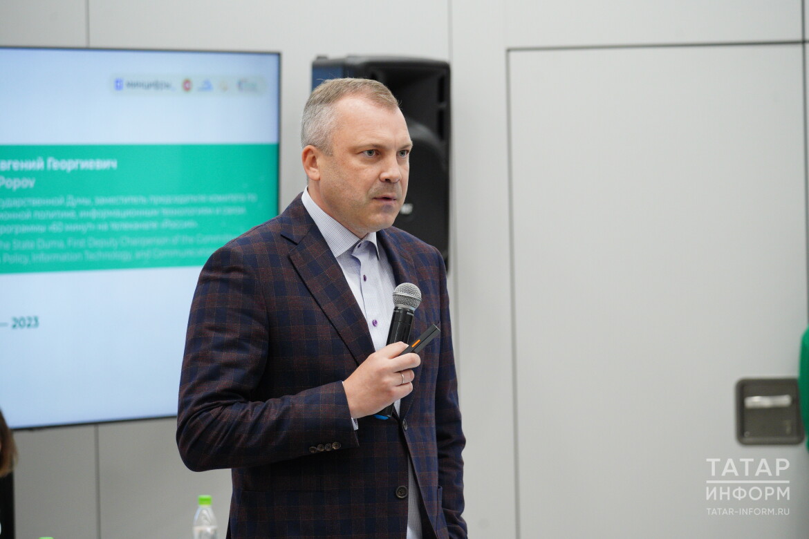 Далее слово взял депутат Госдумы РФ, зампредседателя комитета по информационной политике, информационным технологиям и связям, телеведущий Евгений Попов. Он рассказал, как менялось потребление информации людьми, какие меры приняты для противодействия западной пропаганде, и о степени доверия к СМИ.